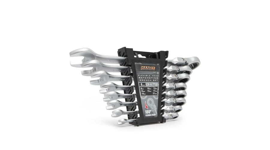 Csuklós nyakának köszönhetően akár merőlegesen vagy szögben álló csavarokat is húzhatunk vele szűk helyen. A legelterjedtebb méretek találhatóak ebben a készletben. Ergonomikus nyélkialakítás. Praktikus műanyag tartóban, melyet a falra is tudunk akasztani, így a készlet mindig egyben van.
